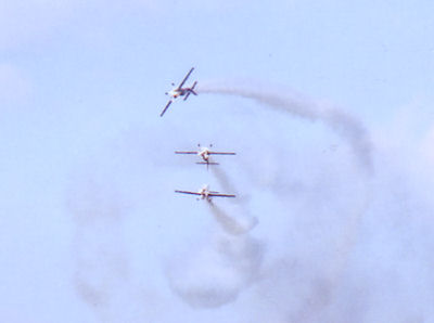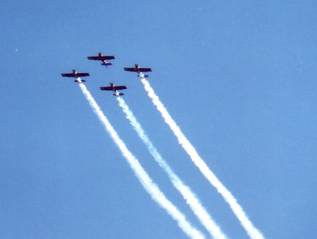 スモーク出しながら、横向きに低速飛行(ナイフエッジという技)でご挨拶!