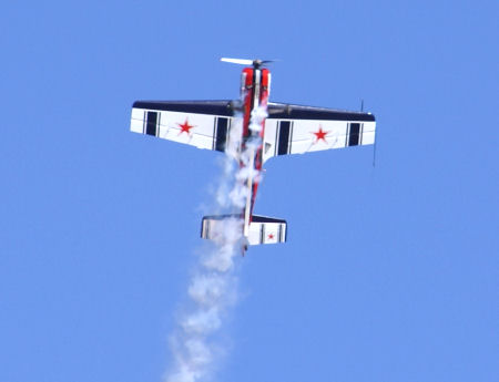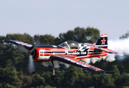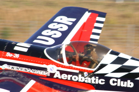 Su-26に乗るロシアの女性、スベトラナ・フェデレンコのご挨拶飛行。