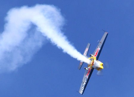 ピーターから、2座のエクストラ300L(Red Bullカラー)を借りて出場!